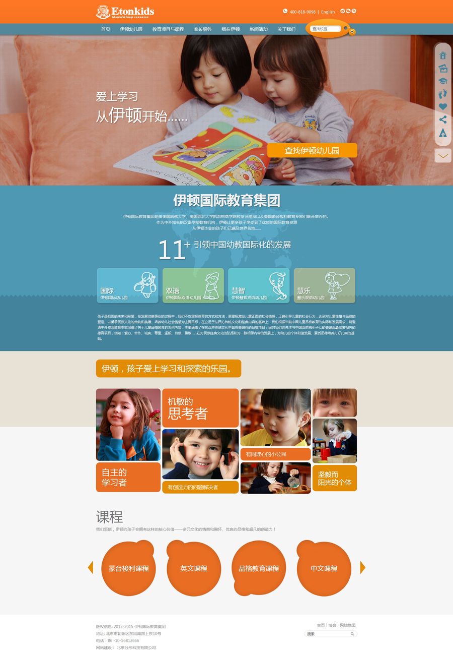 伊顿国际幼儿园是伊顿国际教育机构(现已更名为:伊顿国际教育集团)最先创建的早期教育项目(伊顿国际幼儿园朝阳区丽都校园)伊顿国际幼儿园是伊顿国际教育集团下属的三个幼儿教育项目之一。伊顿双语幼儿园和伊顿慧智双语幼儿园是其姊妹连锁学校